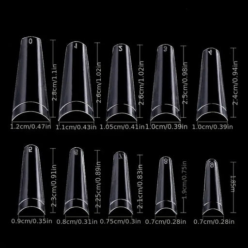 CLEAR COFFIN NAIL TIP XXL 600 MÓNG/ BỊCH (Size từ 0 đến 9) (Số 4 x 2 và số 5 x 2) - Móng mỏng dễ gắn 600PCS Extra long straight stiletto tips ...